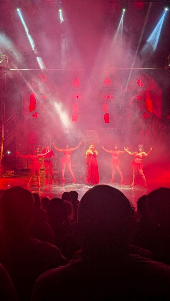 The experience begins before the first act even hits the stage, opening with a chilling séance and a grim warning to the audience about the macabre sights to follow. From there, we were treated to a relentless variety of singers, raunchy comedy, and bone-snapping contortionists.